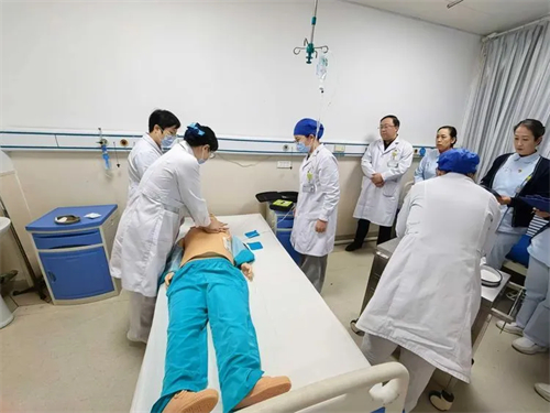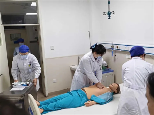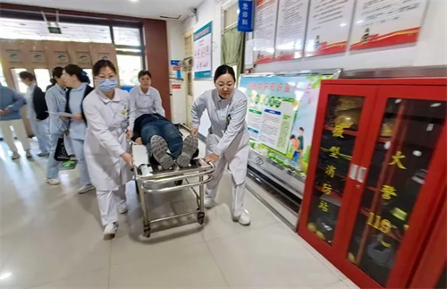 演练过程中,各小组紧密配合、高效联动。护士们积极配合医生,迅速对患者进行快速分类、转运和救治。针对重症突发心脏骤停患者,快速启动患者突发心脏骤停预案。护士们分工协作,迅速实施心肺复苏 + AED抢救,呼叫医生,建立静脉通道,配合抢救工作,密切监测患者病情变化,每一项操作都精准无误、争分夺秒;对于轻症患者,同样给予悉心照护,安抚其情绪,通过小心搀扶、轮椅转运等方式,由专人引导至专科门诊就诊,有条不紊地执行各项护理措施,给予他们细致关怀与专业护理。