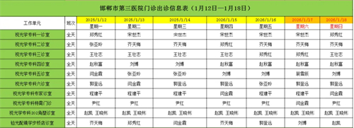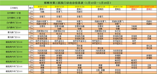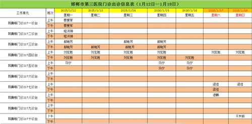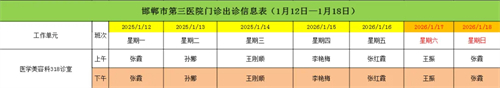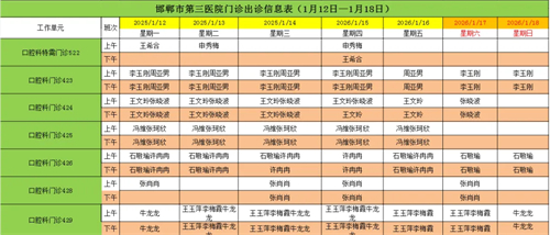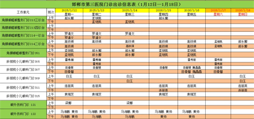 邯郸市第三医院(2026年1月12日—2026年1月18日)门诊出诊信息