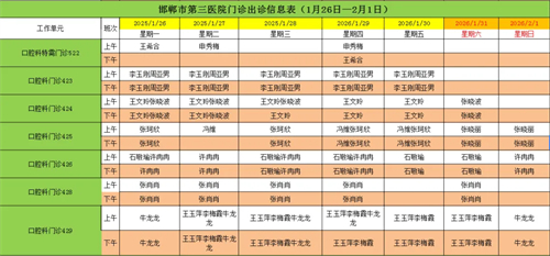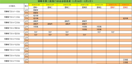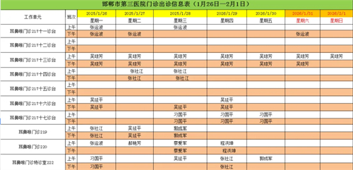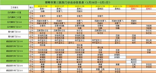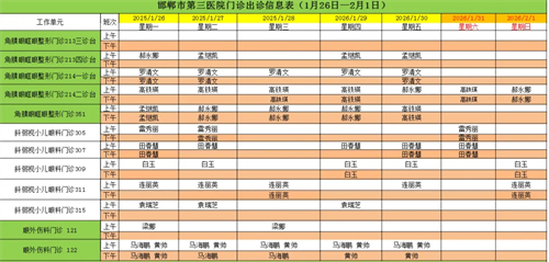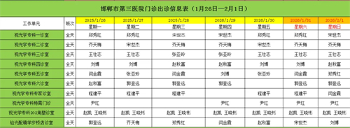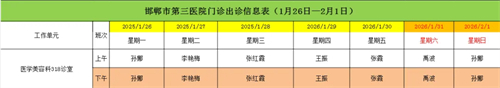 邯郸市第三医院(2026年1月26日—2026年2月1日)门诊出诊信息