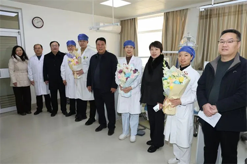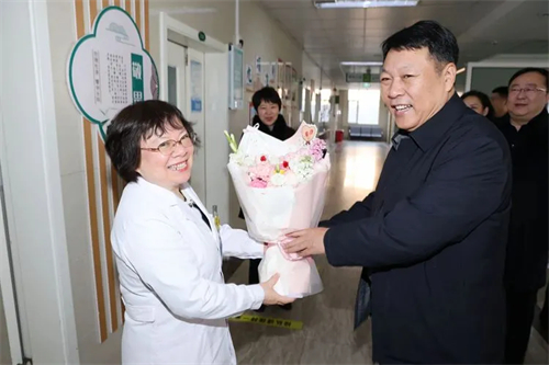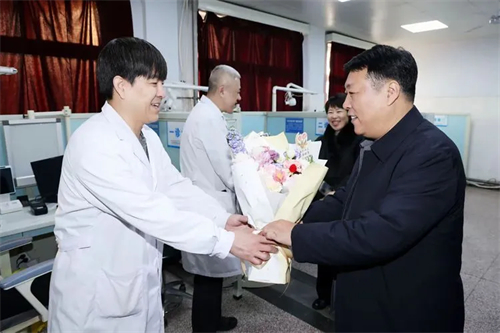 在住院病区,领导们关切地询问了患者的病情与治疗情况,叮嘱大家安心休养、保持乐观心态,积极配合诊疗,早日康复回家。随后,张鑫书记亲自为住院患者送上精心准备的饺子,让他们在医院也能感受到家的温暖与节日的氛围。