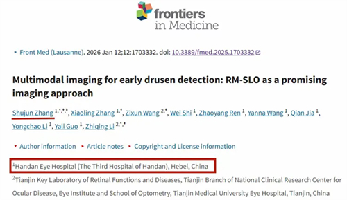 在喜迎建院 80 周年之际,邯郸市眼科医院(邯郸市第三医院)学科建设与科研创新再结硕果。由我院眼特殊检查室团队主导的科研项目 ——《多模态影像技术在早期玻璃膜疣检测中的应用研究》,近日成功发表于国际权威期刊 Frontiers in Medicine,为早期年龄相关性黄斑变性的精准筛查与诊断,提供了全新、可靠的影像学方法。