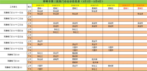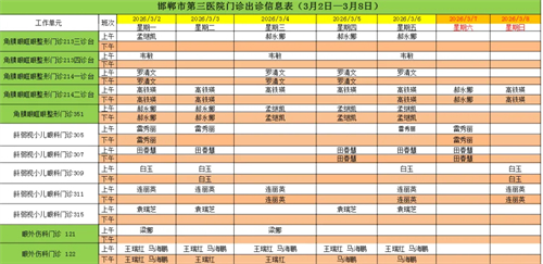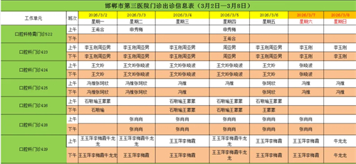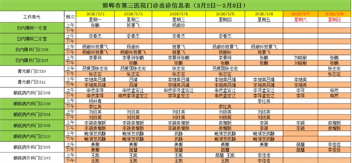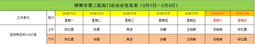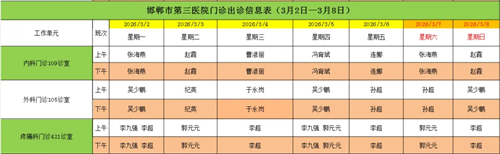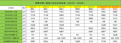 邯郸市第三医院(2026年3月2日—2026年3月8日)门诊出诊信息